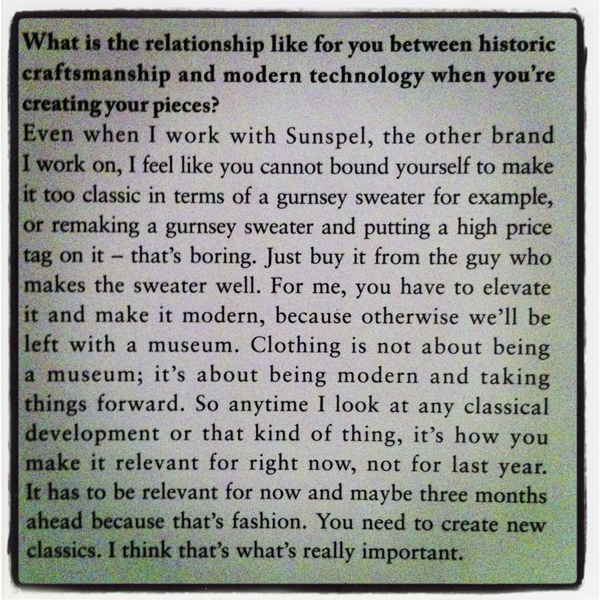 "Clothing is not about being a museum; it's about being modern and taking things forward."